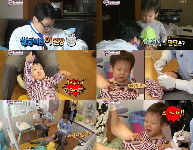 하지만 검사를 하는 것만으로도 서준은 울음을 터뜨렸고, 이를 보던 서언도 감정을 이입했다. 이후 서언도 힘겹게 진료를 무사 진행했다. 이후 지료를 마친 치과 의사는 쌍둥이의 이 상태에 대해 "이빨 사이가 벌어지지 않아 있어서 양치질이 깨끗하게 되지 않을 수 있다"는 말과 함께 빨대컵 사용을 금지했고, 무턱 가능성에 대해서도 언급해 이휘재를 걱정케 했다.