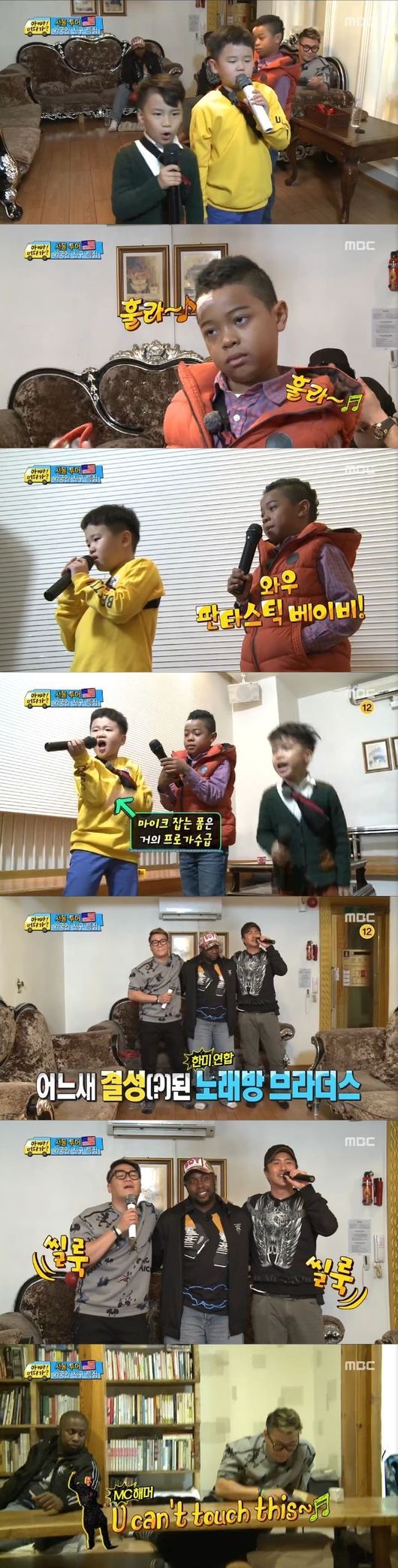 2일 오후 방송된 MBC 예능프로그램 '일밤-아빠!어디가?'(이하 '아빠어디가')에서는 노래방에서 함께 노래를 부르며 더욱 친밀해지는 윤민수-후, 안정환-리환, 미국에서 온 찬이 부자의 모습이 그려졌다.