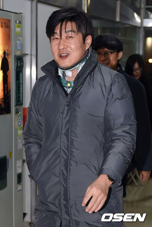 OCN 드라마 '나쁜녀석들' 종방연이 2일 오후 서울시 영등포구 여의도동 위치한 에리트빌딩 은성회관에서 펼쳐졌다. 이날 김상중이 목에 깁스를 한채로 종방연에 참석했다. OCN '나쁜 녀석들'은 각종 강력범죄를 저지른 이들을 모아 더 나쁜 악을 소탕하려는 강력계 형사와 나쁜 녀석들의 이야기를 그린 11부작 드라마다. / youngrae@osen.co.kr