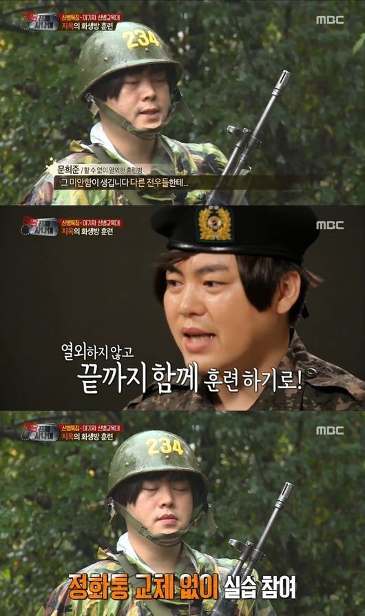 문희준이 천식에도 열외없이 화생방 훈련에 참여했다.