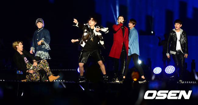 2일 오후 부산 아시아드 주경기장에서 진행된 '2014 아시아송 페스티벌'에서 블락비가 멋진무대를 선보이고 있다.