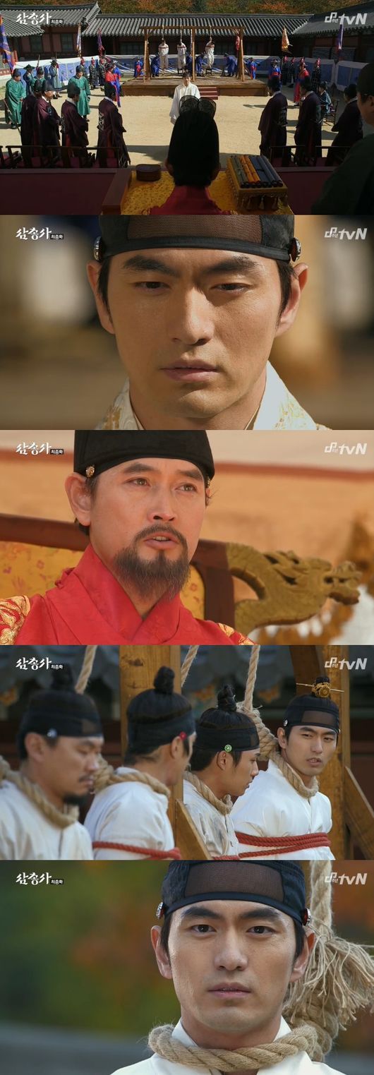 2일 오후 방송된 tvN 일요드라마 '삼총사'(극본 송재정, 연출 김병수) 1부 최종회에는 박달향(정용화 분), 허승포(양동근 분), 안민서(정해인 분)에게 교형을 내리는 인조(김명수 분)의 모습이 전파를 탔다.