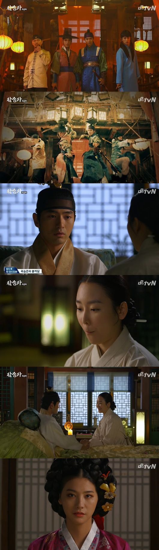 2일 오후 방송된 tvN 일요드라마 '삼총사'(극본 송재정, 연출 김병수) 1부 최종회에는 병자호란 이후 후금으로 끌려갔던 소현세자(이진욱 분)와 재회한 박달향(정용화 분)의 모습이 그려져 2부의 기대감을 높였다. 죽은 줄만 알았던 향선이(유인영 분)도 여전히 살아있었다.