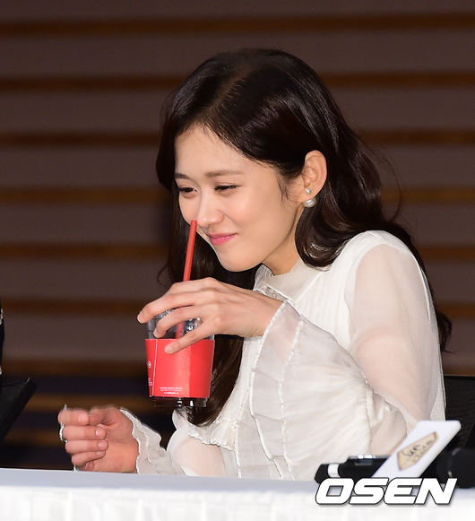 장나라가 간담회 도중 미소짓고 있다.