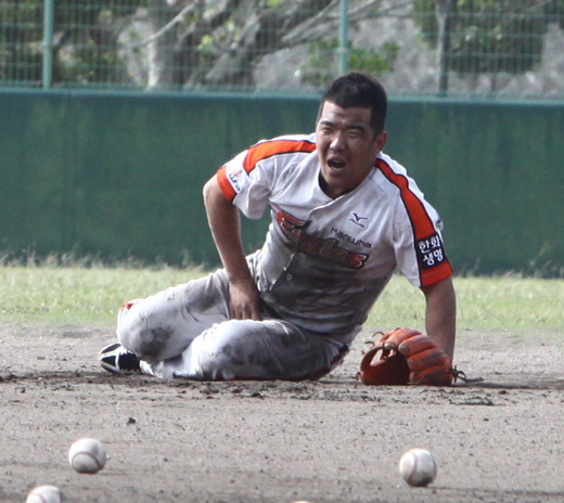 하지만 김 감독이 떠난 뒤에도 한화의 훈련 분위기에는 긴장감이 넘쳐흘렀다. 김광수 수석코치를 비롯해 남아있는 코치들이 똑같은 일정과 강도로 훈련을 진행했다. 핵심 선수 정근우(32)도 예외 없었다. 그는 절친한 김태균과 함께 수비 훈련을 받으며 넘어지고 구르길 반복했다.