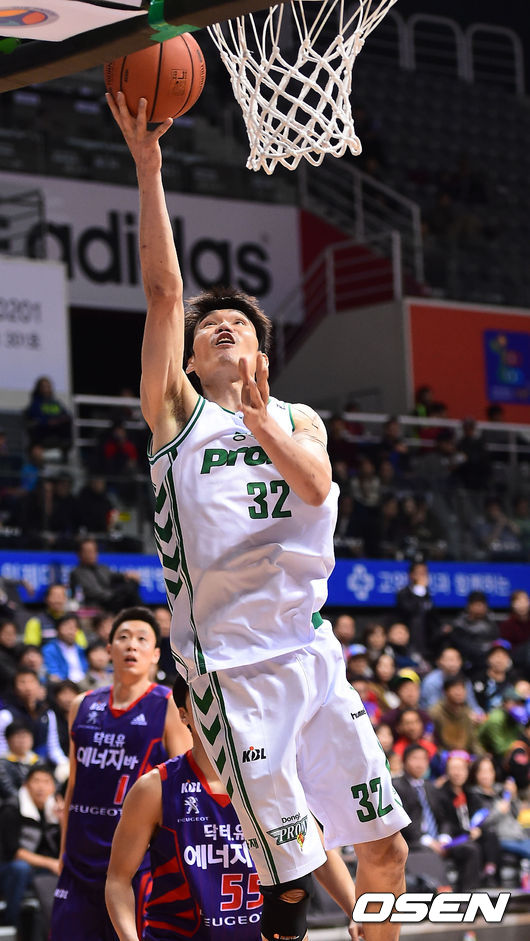 3일 오후 경기 고양시 고양실내체육관서 열린 '2014-2015시즌 KCC 프로농구' 고양 오리온스와 원주 동부의 경기, 3쿼터 동부 김주성이 레이업슛을 성공시키고 있다