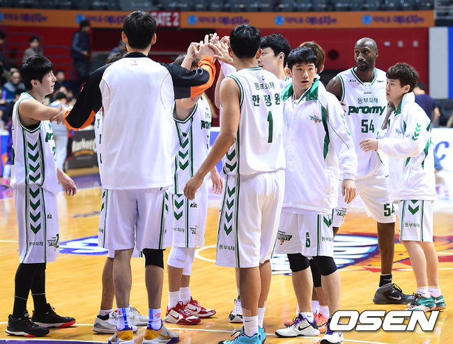 경기종료 후 동부 선수들이 승리의 기쁨을 나누고 있다./ soul1014@osen.co.kr