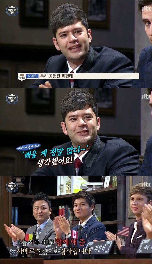 이날 다니엘 스눅스의 빈자리를 채운 사메르는 “오늘 정말 재미있었고 사실 배운 게 정말 많다. 특히 공형진씨에게 결혼과 이혼에 대한 의견을 들었을 때 ‘제가 아직 어려서 배울게 많다’고 생각했다”고 소감을 전했다.