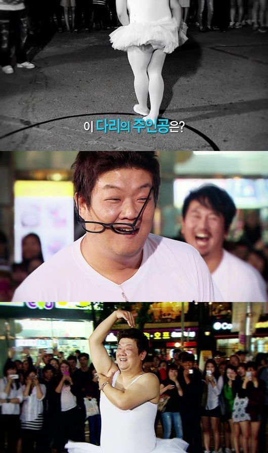 사람들의 비명과 얼굴이 보이지 않는 발레리나 복을 입은 하체, ‘이 다리의 주인공은’이라는 멘트로 시작한 3분 정도의 영상은 홍대거리에서 ‘귀방망이 후 안경 멀리 날리기 게임’ 후 벌칙영상으로 현장에서 보는 이들과 코미디언 선후배들이 유민상의 발레리나 벌칙에 즐거워하는 모습이 영상을 보는 이들의 웃음을 자아냈다.