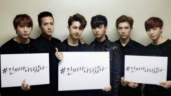 그룹 빅스가 '진짜가 나타났다'는 피켓을 들고 있는 사진이 등장해 화제다.