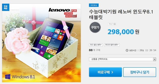 한국레노버(대표이사 강용남, www.lenovo.co.kr)가 쿠팡과 함께 수능 대박 기원 프로모션을 통해 레노버 윈도우 태블릿Miix 2 8을 제공한다고 밝혔다.
