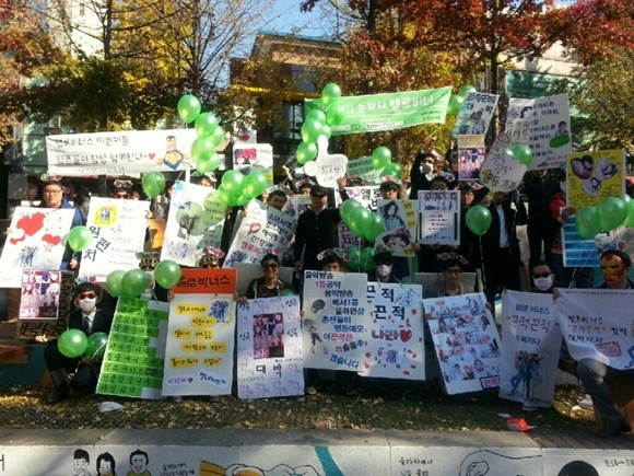 이른바 '헬삼빠(헬로비너스를 좋아하는 삼촌과 오빠들)'는 3일 정오 서울 명동에서 라임색 풍선을 들고 팬 이벤트를 열었다. 각종 플랜카드, 현수막을 든 이 남성들은 곧장 대열을 이루고 구호를 외치며 깜짝 퍼포먼스를 진행했다.