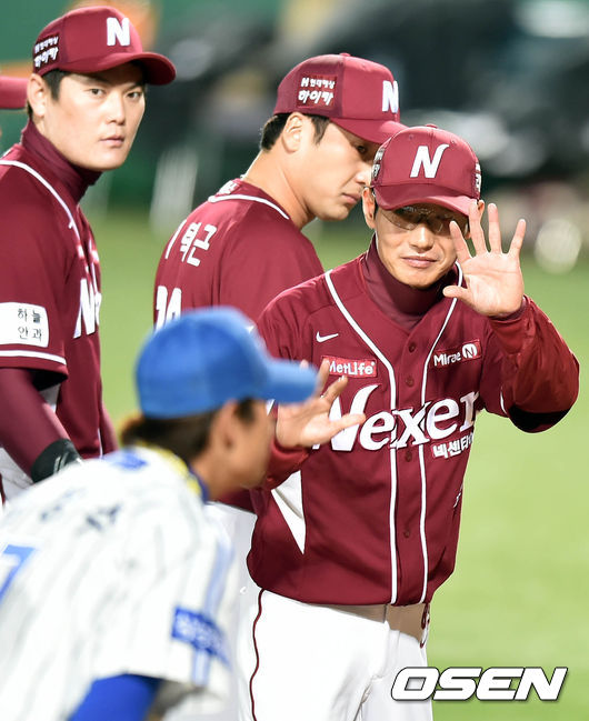 4일 오후 대구야구장에서 열린 2014 한국야쿠르트 세븐 프로야구 포스트시즌 한국시리즈 1차전, 경기, 염경엽 감독이 인사를 하고 있다.