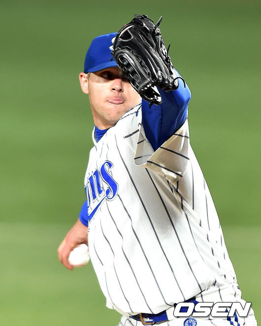 4일 오후 대구야구장에서 열린 2014 한국야쿠르트 세븐 프로야구 포스트시즌 한국시리즈 1차전, 경기, 삼성 선발 밴덴헐크가 힘차게 공을 뿌리고 있다.