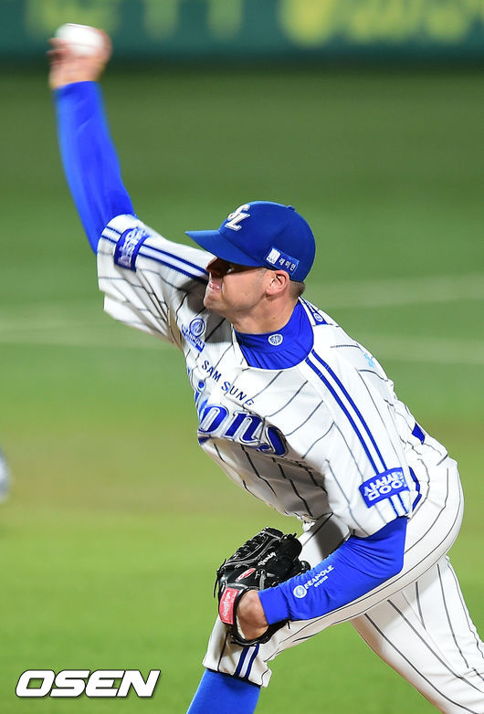 4일 오후 대구구장에서 열린 '2014 한국야쿠르트 세븐 프로야구' 한국시리즈 1차전 삼성 라이온즈와 넥센 히어로즈의 경기, 1회초 삼성 선발투수 밴덴헐크가 역투하고 있다.