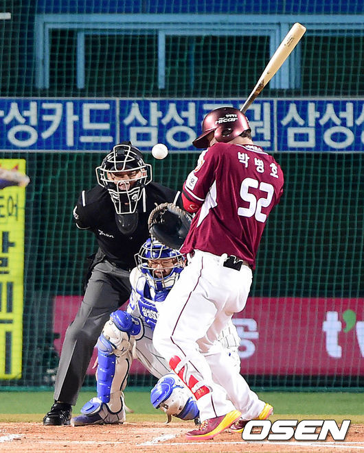1회초 넥센 공격 2사 1루 상황 박병호가 삼성 선발 밴덴헐크의 공에 몸을 맞고 있다.