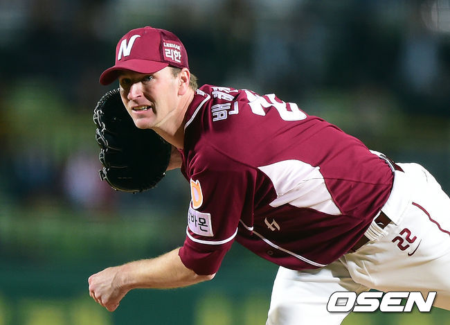 4일 오후 대구야구장에서 열린 2014 한국야쿠르트 세븐 프로야구 포스트시즌 한국시리즈 1차전, 1회말 넥센 밴헤켄이 역투하고 있다.