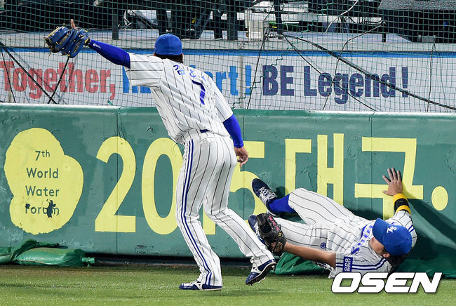 2회초 넥센 공격 1사 1루 상황 이성열의 파울 타구를 삼성 3루수 박석민이 넘어지며 잡아내고 있다.