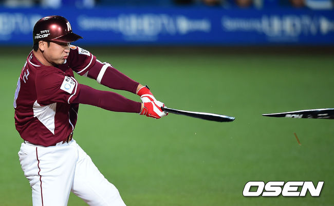 4일 오후 대구구장에서 열린 '2014 한국야쿠르트 세븐 프로야구' 한국시리즈 1차전 삼성 라이온즈와 넥센 히어로즈의 경기, 2회초 1사 1루 넥센 이택근이 안타를 날리고 있다
