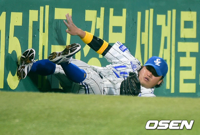 4일 오후 대구야구장에서 열린 2014 한국야쿠르트 세븐 프로야구 포스트시즌 한국시리즈 1차전, 2회초 1사 1루에서 삼성 박석민이 넥센 이성열의 파울 타구를 잡아내고 있다.