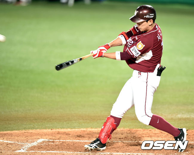 4일 오후 대구야구장에서 열린 2014 한국야쿠르트 세븐 프로야구 포스트시즌 한국시리즈 1차전, 경기, 3회초 선두타자 서건창이 3루타를 치고 있다.