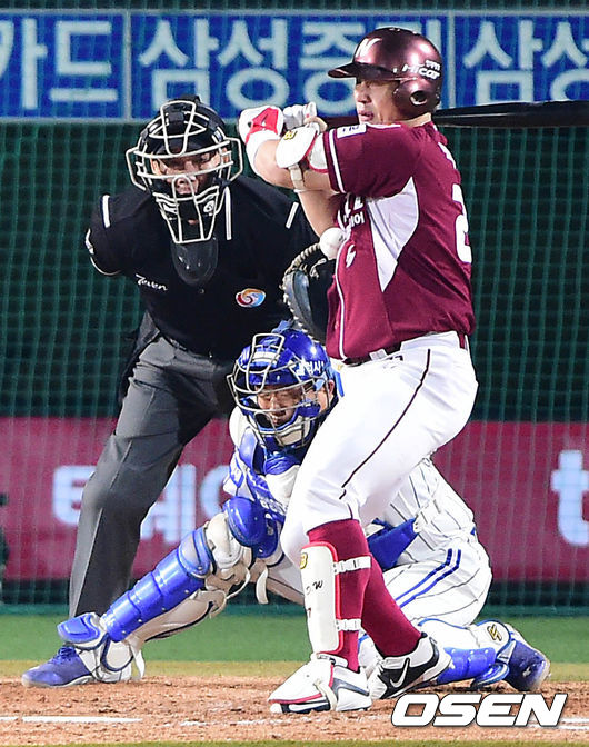 4회초 넥센 공격 2사 주자없는 상황 박동원이 삼성 선발 밴덴헐크의 공에 몸을 맞고 있다.