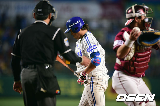 4일 오후 대구야구장에서 열린 2014 한국야쿠르트 세븐 프로야구 포스트시즌 한국시리즈 1차전, 4회말 무사에서 삼성 박석민이 삼진으로 물러나고 있다.