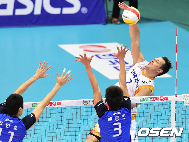 4일 오후 수원시 수원실내체육관에서 열린 '2014-2015 NH농협 V-리그' 한국전력과 현대캐피탈의 경기 1세트 쥬리치가 공격을 시도하고 있다.