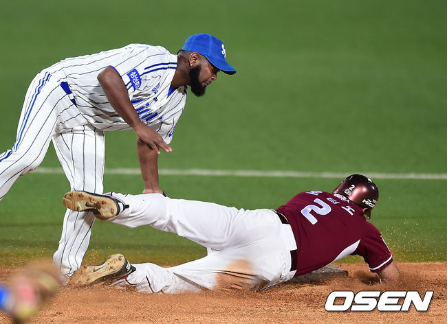 4일 오후 대구구장에서 열린 '2014 한국야쿠르트 세븐 프로야구' 한국시리즈 1차전 삼성 라이온즈와 넥센 히어로즈의 경기, 7회초 삼성 차우찬 투수의 보크때 1루 주자 로티노가 도루 시도하고 있다.