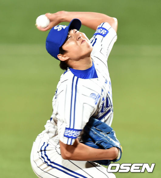 4일 오후 대구야구장에서 열린 2014 한국야쿠르트 세븐 프로야구 포스트시즌 한국시리즈 1차전, 경기, 7회초 1사 밴덴헐크에 이어 마운드에 오른 차우찬이 힘차게 공을 뿌리고 있다.