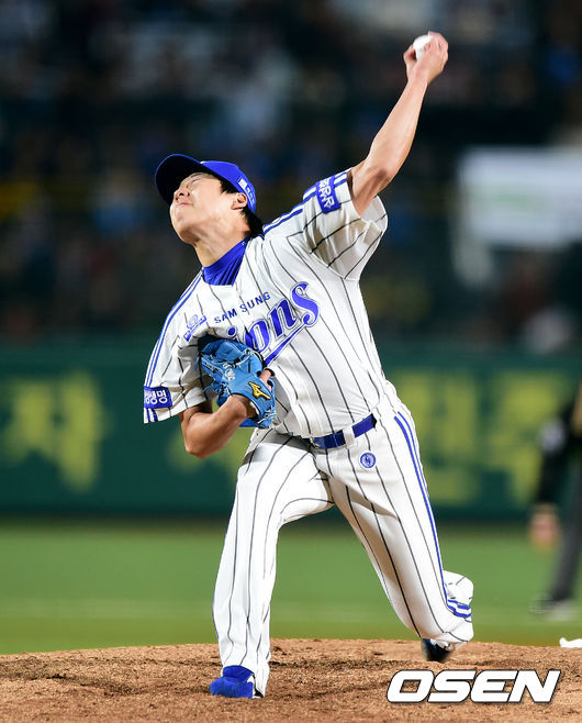 4일 오후 대구야구장에서 열린 2014 한국야쿠르트 세븐 프로야구 포스트시즌 한국시리즈 1차전, 7회초 1사에서 삼성 차우찬이 마운드에 올라 역투하고 있다.