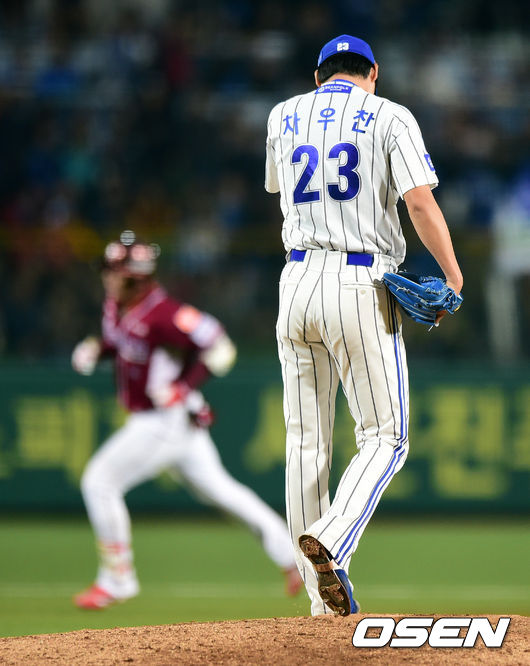한국시리즈 1차전, 고개 떨군 차우찬, 강정호에 투런포 허용