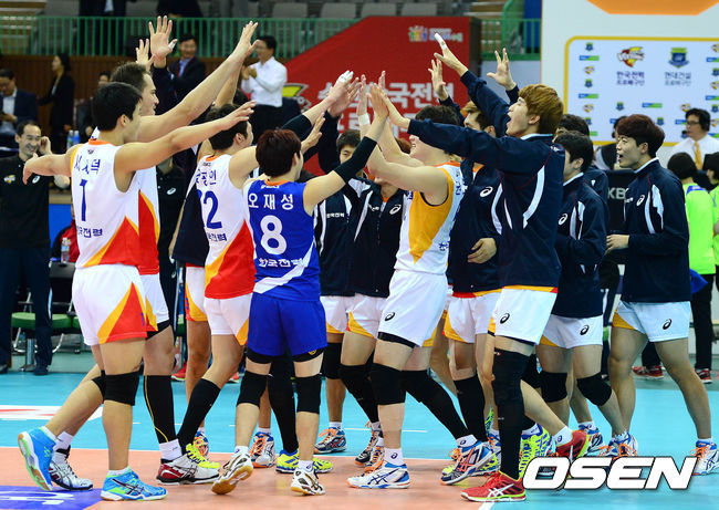 한국전력은 4일 오후 수원실내체육관에서 열린 NH농협 2014-2015 프로배구 V리그 남자부 1라운드 홈경기서 현대캐피탈을 세트스코어 3-0(25-19, 25-18, 25-19)으로 완파했다. 앞선 경기서 '디펜딩 챔프' 삼성화재를 꺾었던 한국전력은 준우승팀 현대캐피탈을 물리치며 상승세를 달렸다.