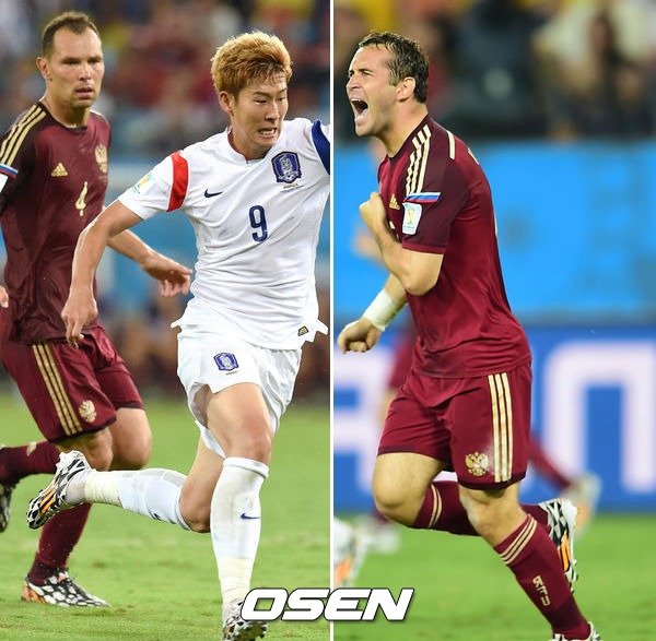 한국은 지난 6월 18일 2014 브라질 월드컵 조별리그 H조 첫 경기에서 러시아와 만났다. 한국은 후반 23분 이근호가 선취골을 뽑았다. 하지만 후반 28분 케르자코프에게 통한의 동점골을 내줘 첫 승이 좌절됐다. 이후 분위기가 꺾인 한국은 알제리(2-4패)와 벨기에(0-1패)에게 연패를 당하며 1무 2패로 탈락했다.