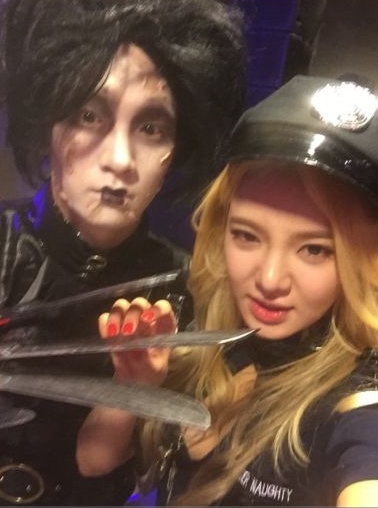 소녀시대 멤버 효연과 샤이니 키는 각각 여경과 ‘가위손’으로 변신, 특히 키는 가위 도구부터 분장까지 완벽한 싱크로율을 자랑해 눈길을 끌었다.