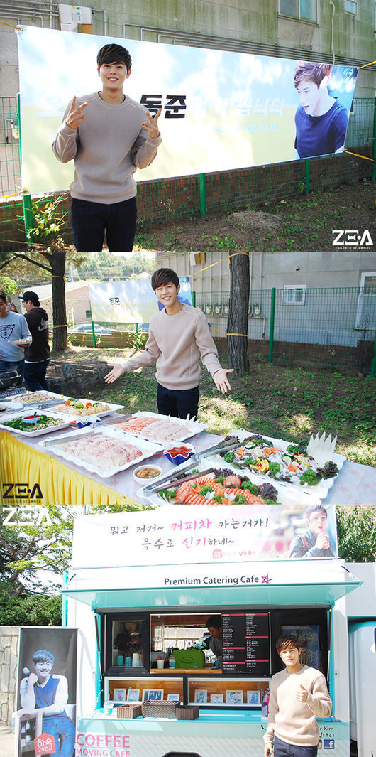 5일 소속사 스타제국에 따르면 '하숙24번지'에서 열혈 운동 중독 남으로 열연 중인 김동준을 응원하기 위해 김동준의 팬들이 김동준과 동료 배우, 스태프들에게 풀코스 뷔페와 커피차를 선물했다.