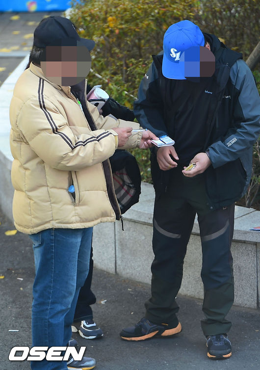 5일 오후 대구야구장에서 열린 2014 한국야쿠르트 세븐 프로야구 포스트시즌 한국시리즈 2차전, 경기에 앞서 매표소 앞 암표가 거래되고 있다.