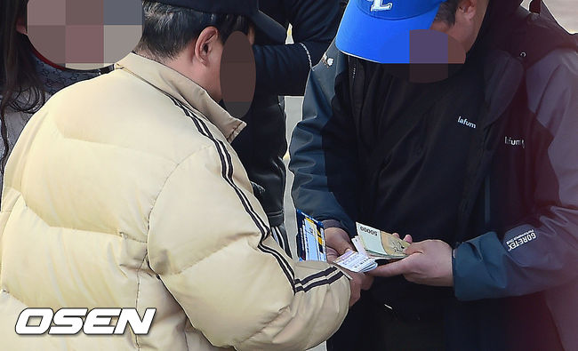 5일 오후 대구야구장에서 열린 2014 한국야쿠르트 세븐 프로야구 포스트시즌 한국시리즈 2차전, 경기에 앞서 매표소 앞 암표가 거래되고 있다.