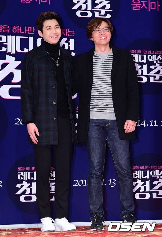 5일 오후 서울 롯데시네마 건대입구에서 열린 영화 '레디액션 청춘' 언론시사회에서 송승현, 주성수 감독이 포토타임을 갖고 있다.