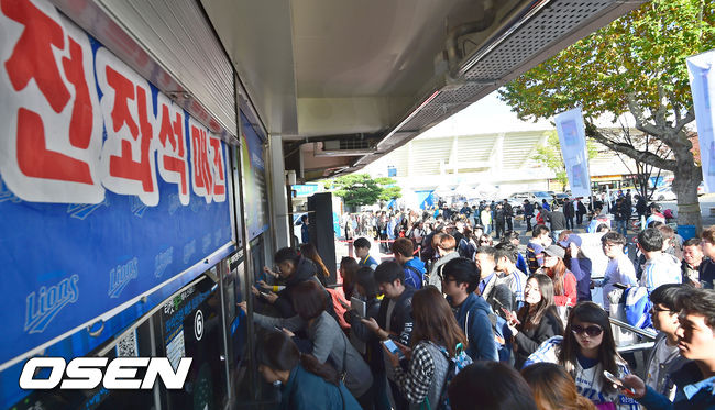 5일 오후 대구야구장에서 열린 2014 한국야쿠르트 세븐 프로야구 포스트시즌 한국시리즈 2차전, 경기에 앞서 매표소 앞 늘어선 야구팬들