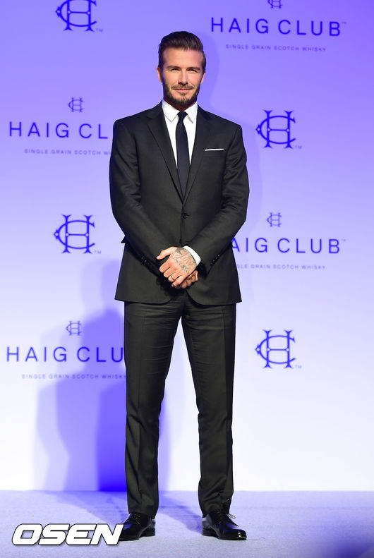 데이비드 베컴이 5일 오후 서울 한남동 그랜드 하얏트 서울에서 열린 '디아지오 코리아 헤이그클럽(위스키)' 기자간담회에 참석해 포토타임을 하고 있다.