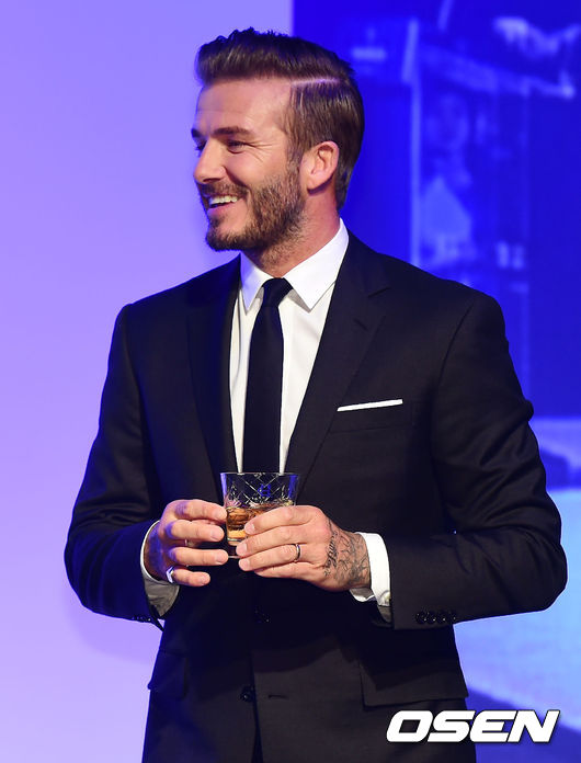 데이비드 베컴이 5일 오후 서울 한남동 그랜드 하얏트 서울에서 열린 '디아지오 코리아 헤이그클럽(위스키)' 기자간담회에 참석해 미소짓고 있다.