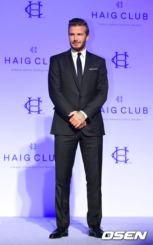 데이비드 베컴이 5일 오후 서울 한남동 그랜드 하얏트 서울에서 열린 '디아지오 코리아 헤이그클럽(위스키)' 기자간담회에서 포토타임을 하고 있다.