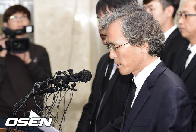 故 신해철의 매형 김형열씨가 입장을 발표하고 있다.