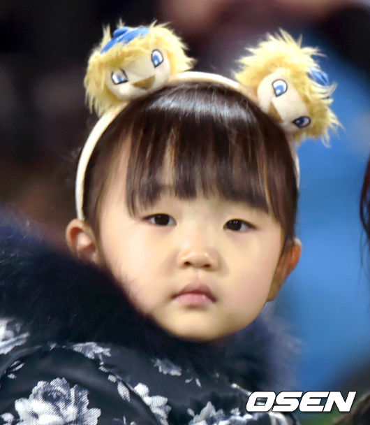 5일 오후 대구야구장에서 열린 2014 한국야쿠르트 세븐 프로야구 포스트시즌 한국시리즈 2차전, 박한이 딸 박수영이 경기를 지켜보고 있다.