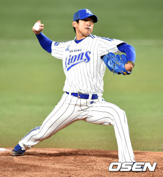 5일 오후 대구야구장에서 열린 2014 한국야쿠르트 세븐 프로야구 포스트시즌 한국시리즈 2차전, 삼성 선발 윤성환이 힘차게 공을 던지고 있다.
