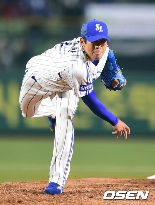 5일 오후 대구야구장에서 열린 2014 한국야쿠르트 세븐 프로야구 포스트시즌 한국시리즈 2차전, 1회초 삼성 선발 윤성환이 역투하고 있다.