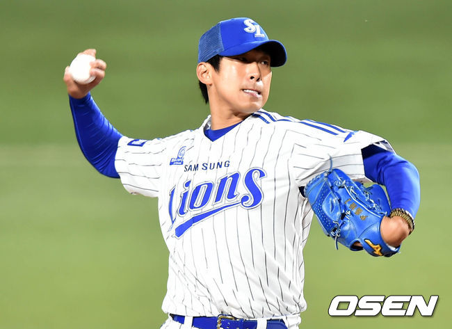 5일 오후 대구야구장에서 열린 2014 한국야쿠르트 세븐 프로야구 포스트시즌 한국시리즈 2차전, 삼성 선발 윤성환이 힘차게 공을 뿌리고 있다.