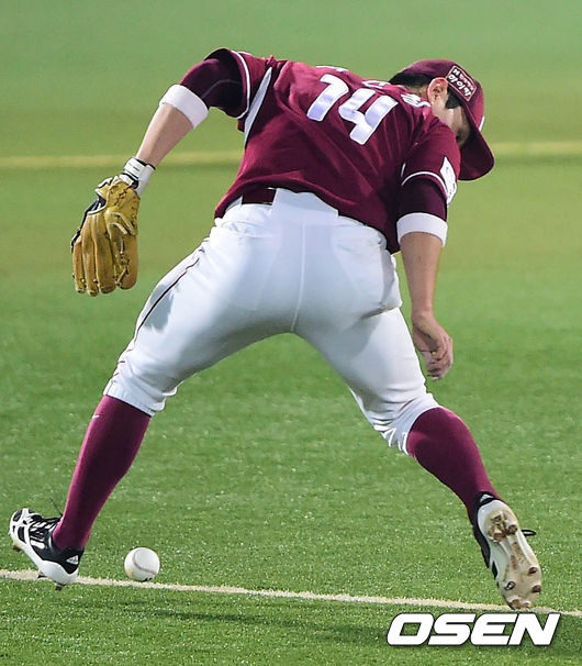1회말 삼성 공격 2사 1루 상황 박석민의 땅볼 타구를 넥센 2루수 서건창이 놓치고 있다.