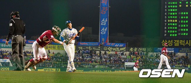 5일 오후 대구야구장에서 열린 2014 한국야쿠르트 세븐 프로야구 포스트시즌 한국시리즈 2차전, 1회말 2사 1,3루에서 삼성 이승엽이 삼진으로 물러나고 있다.